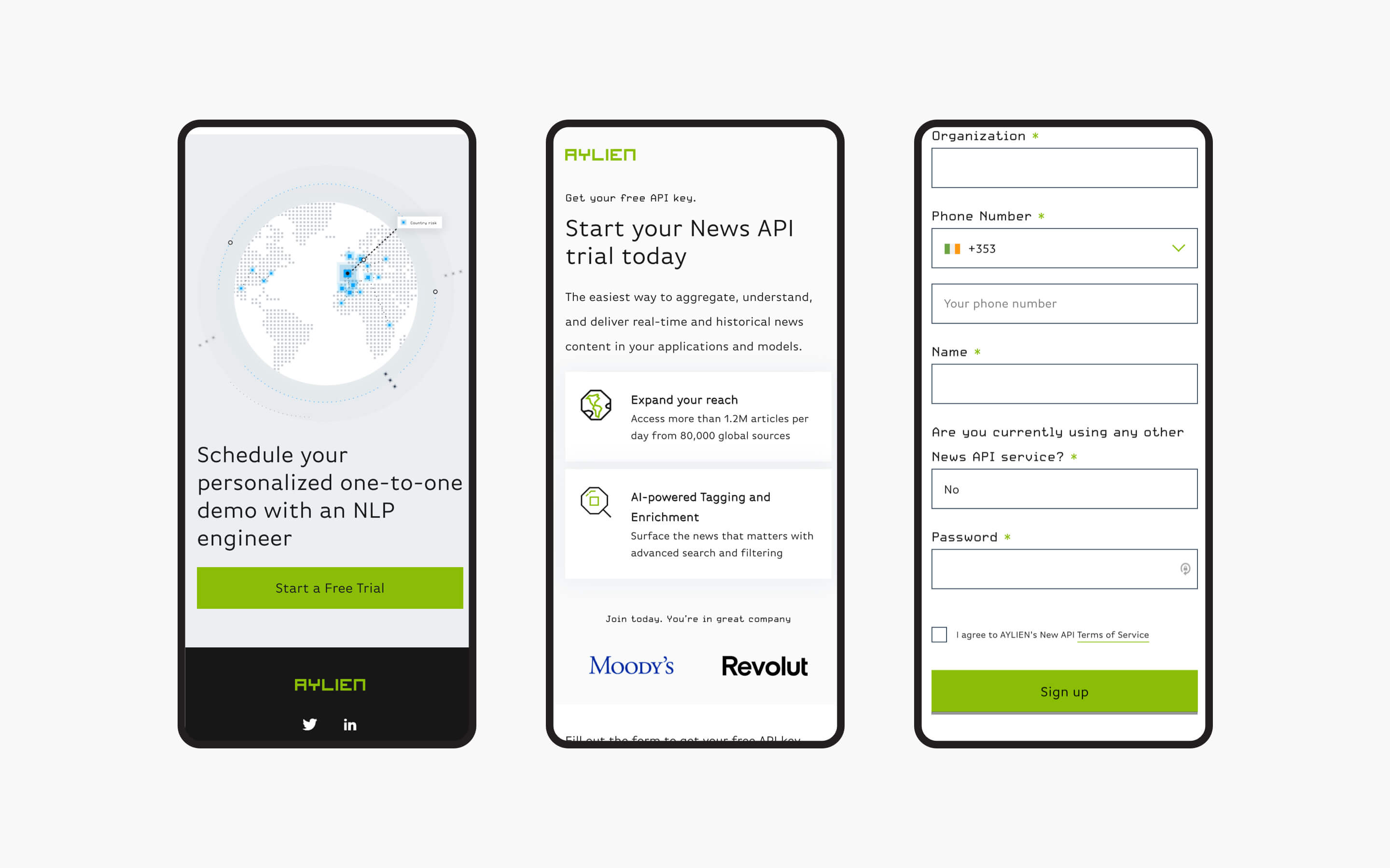 The goals were clear. Drive more high quality leads and increase the conversion rate all the while delivering an outstanding brand & interactive online experience that reflects the status and position of Aylien within this fast evolving market.