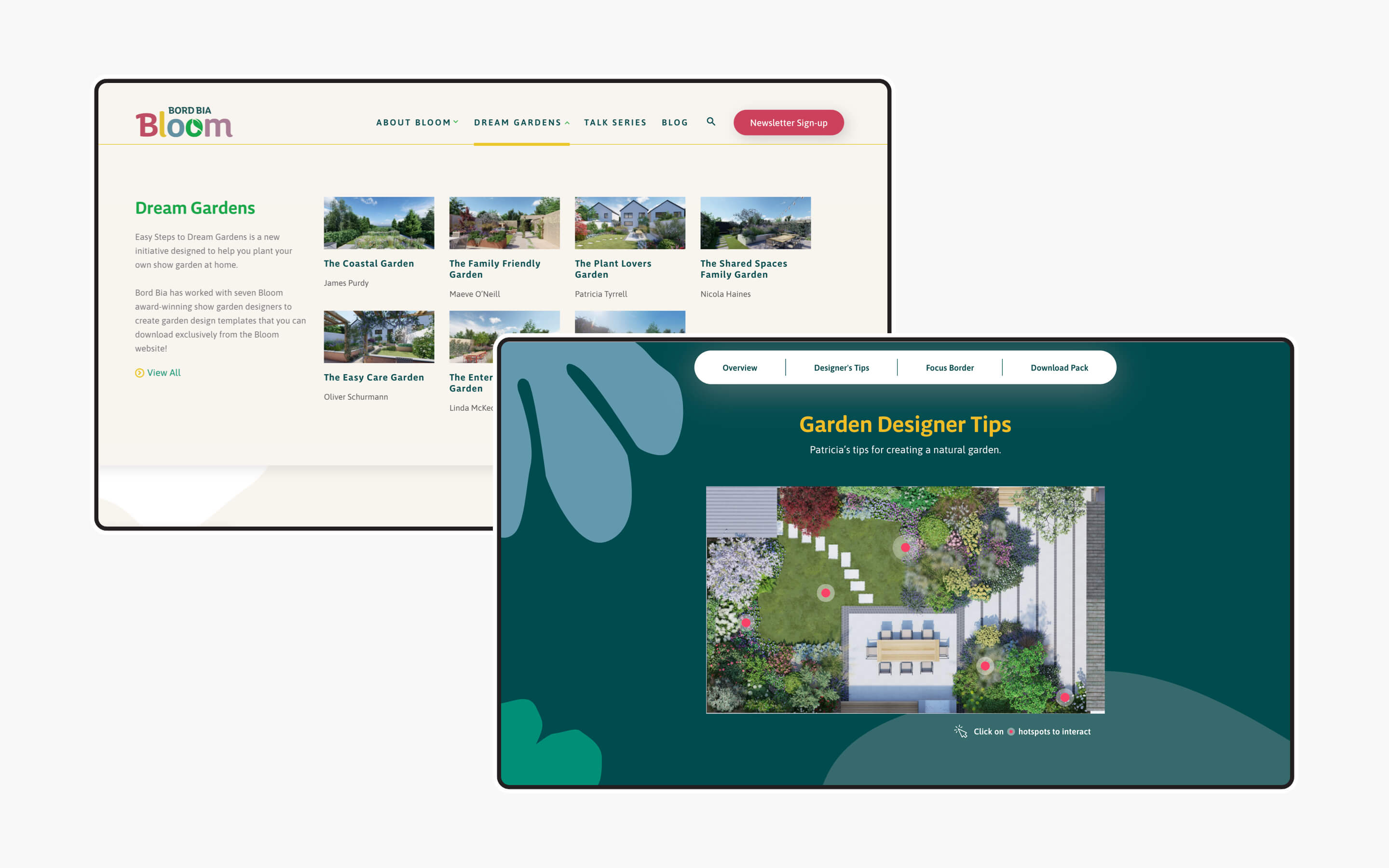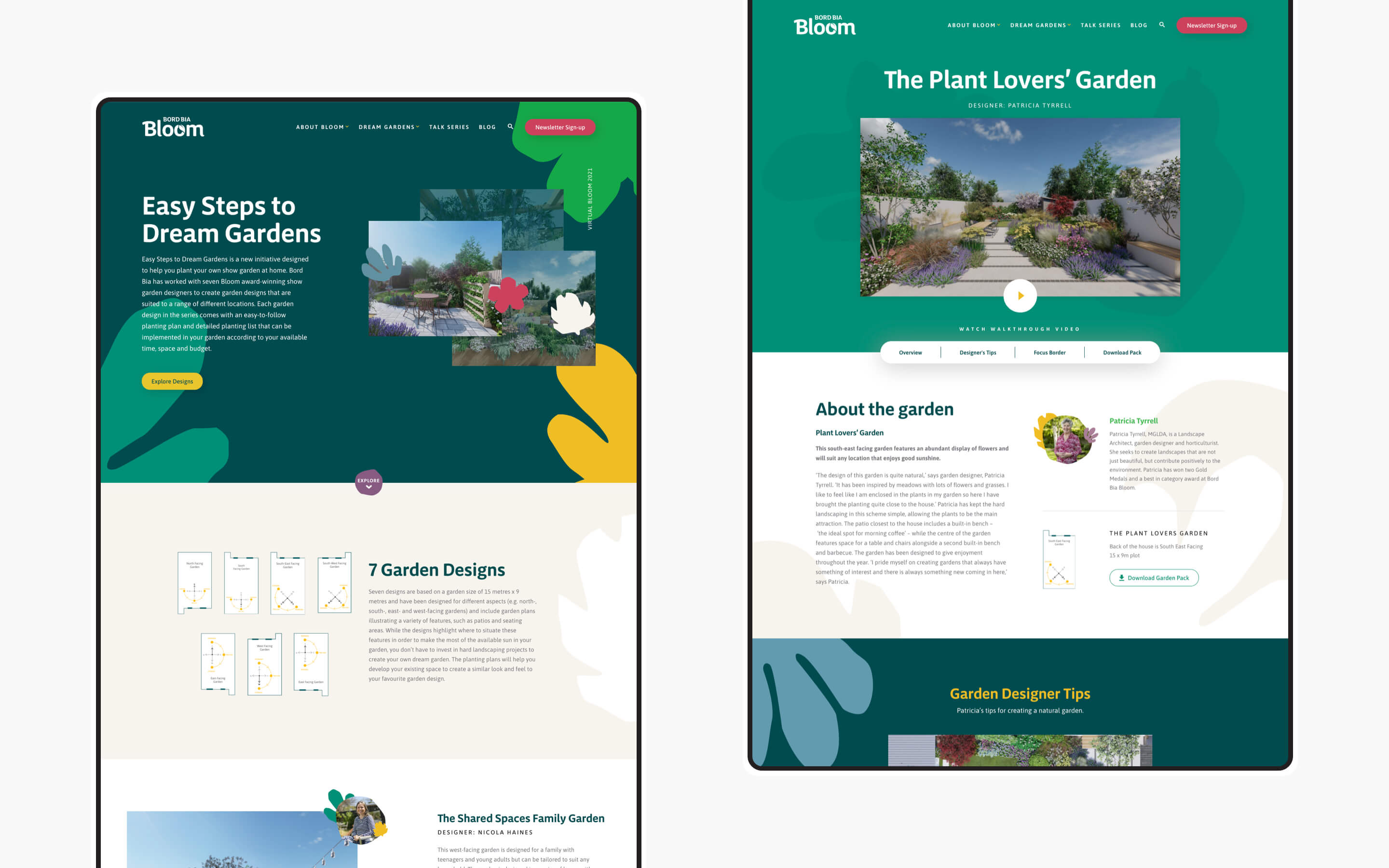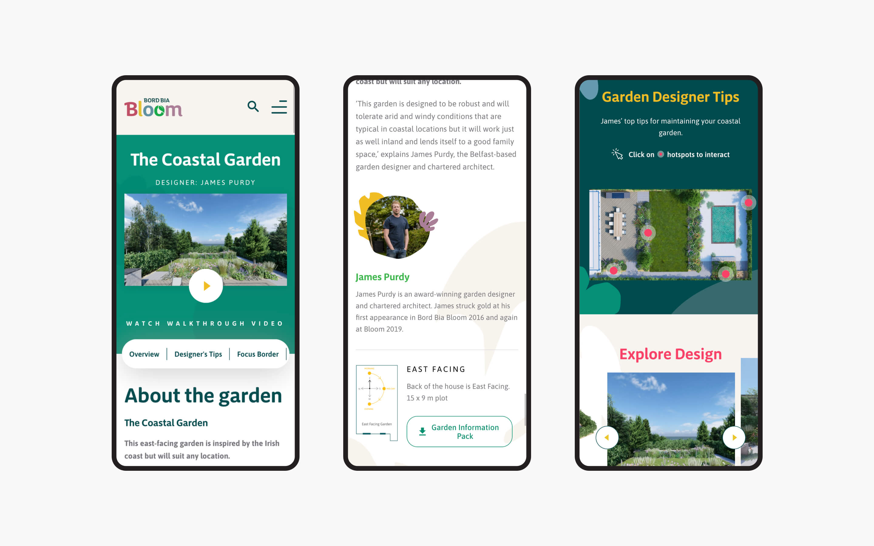 In order to better support the broader horticultural mission of Bloom, Kooba included a variety of useful content on gardening and Irish food, clearly organised in the “Gardens” dropdown. By providing informative value to Bloom’s audience, the website has become a genuine resource for anyone seeking to improve their gardening knowledge. This perfectly connects the experience of the Bloom event with Bord Bia’s wider strategic goal of encouraging and improving Irish gardening.