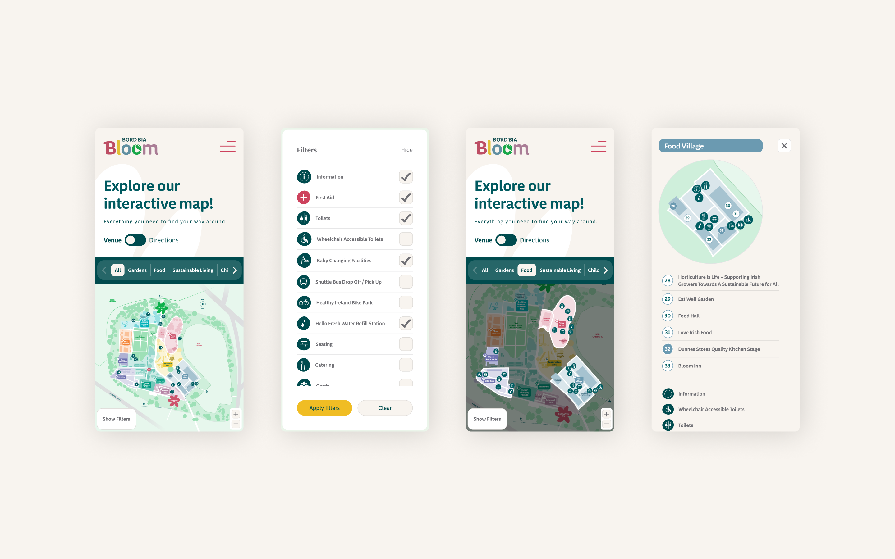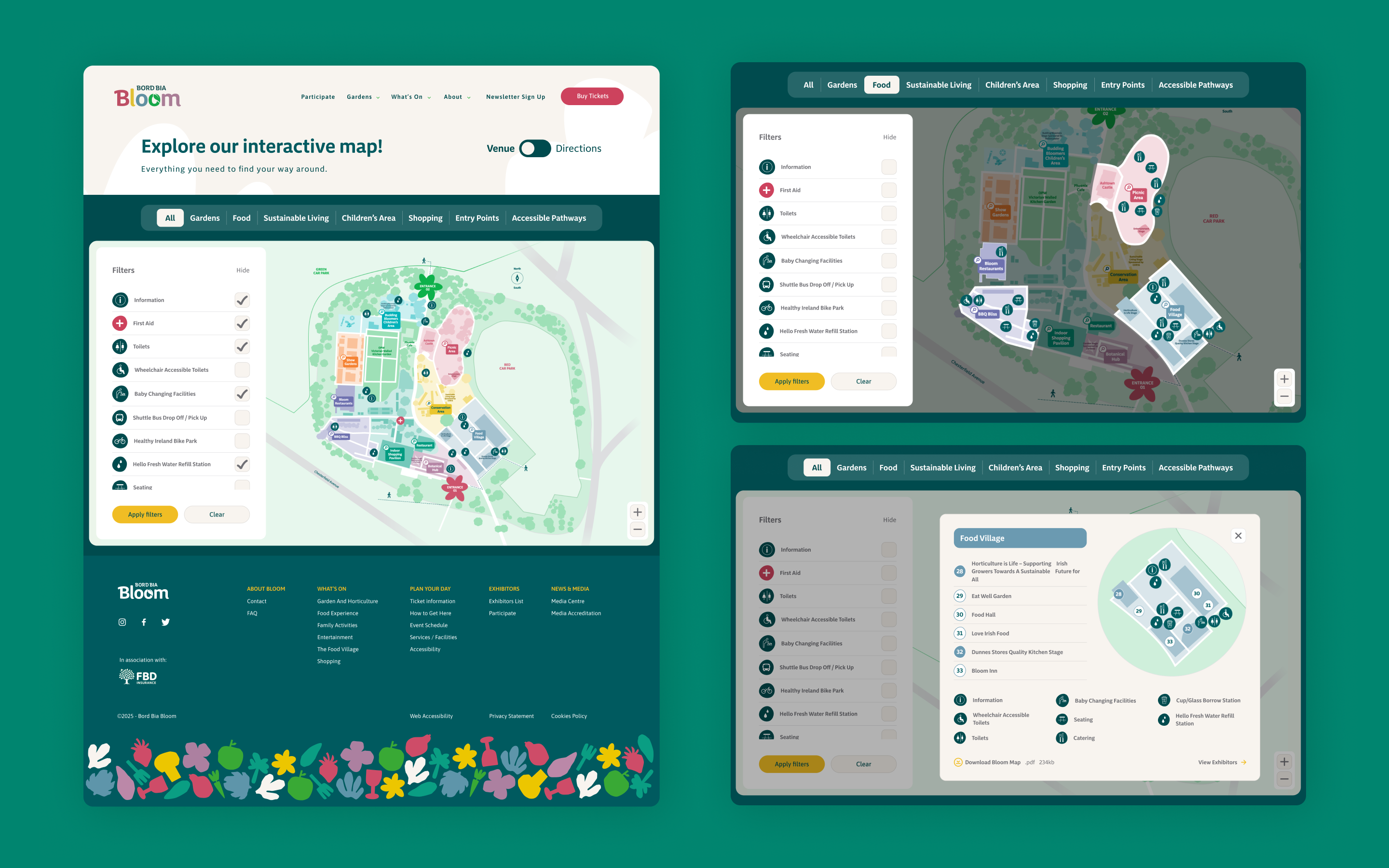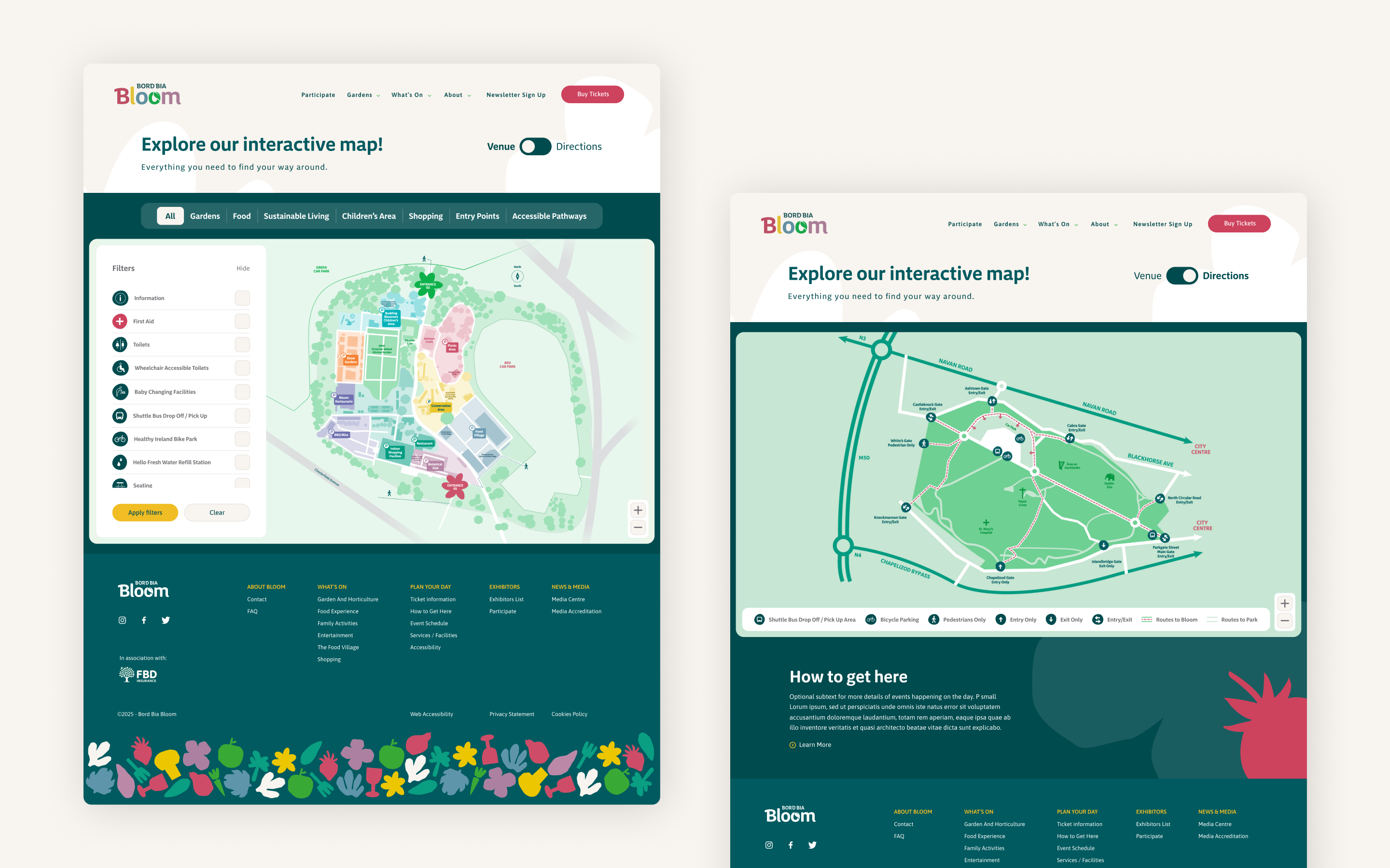 In order to better support the broader horticultural mission of Bloom, Kooba included a variety of useful content on gardening and Irish food, clearly organised in the “Gardens” dropdown. By providing informative value to Bloom’s audience, the website has become a genuine resource for anyone seeking to improve their gardening knowledge. This perfectly connects the experience of the Bloom event with Bord Bia’s wider strategic goal of encouraging and improving Irish gardening.
