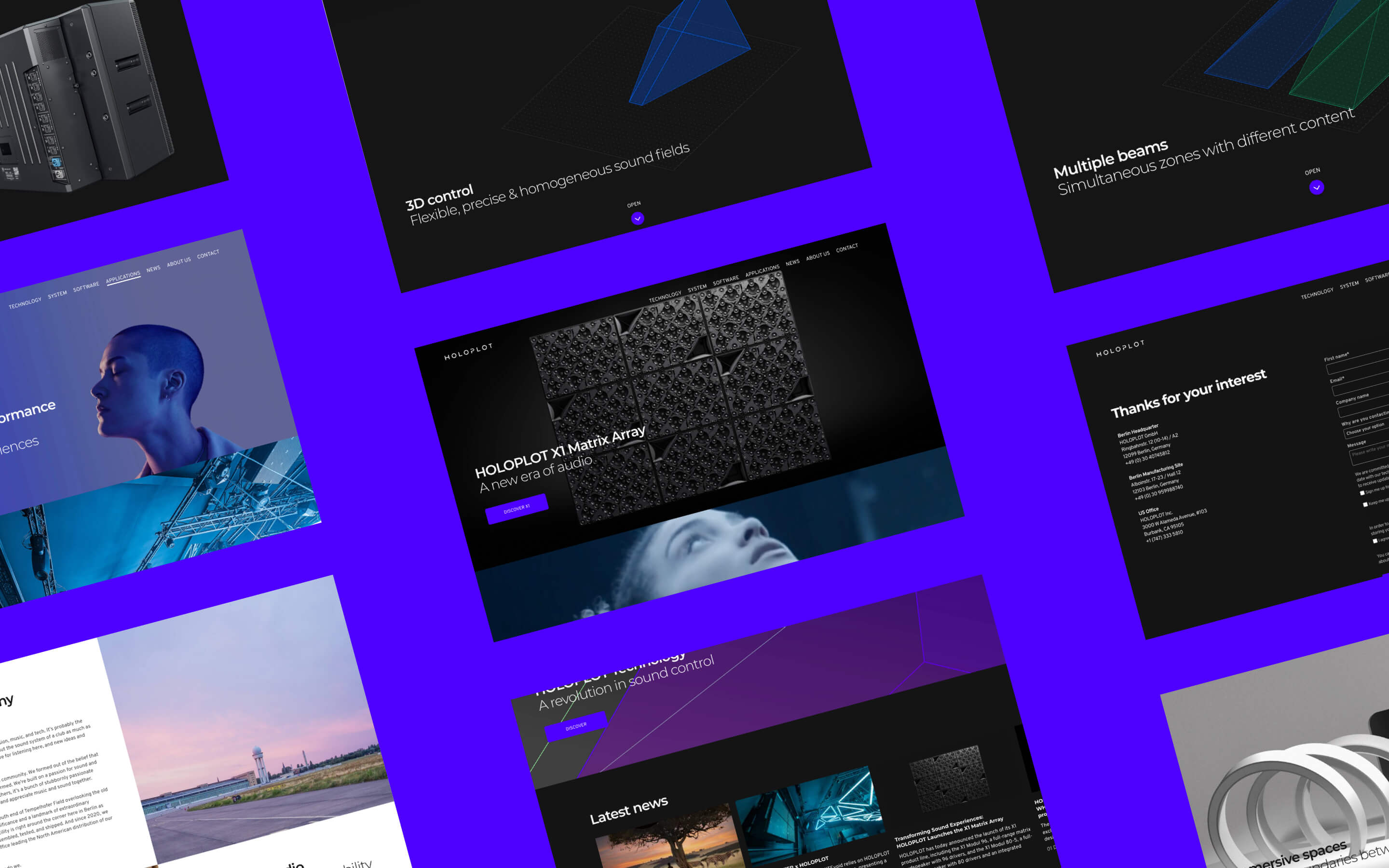 Over the course of our partnership, the website has undergone a multitude of changes as the business evolved. Naturally enough, we wanted to keep up with this change and ensure the website reflected the current reality for Holoplot at every point. Initially, the website needed to inform. It needed to explain this new technology through product content and case studies, and thus encourage prospects to get in touch. We worked closely with the Marketing Manager and Marketing executive to ensure that each touchpoint was reworked to give hyper-focus on the benefits of this new technology. As Holoplot grew, they wanted a space in which they could highlight growing press coverage, blog pieces and case studies, all with the goal of establishing the business as a thought leader within the industry. And as the company grew further, they needed a way to showcase new features and benefits associated with product releases. In response, we helped change information architecture and content and focus the site on the product.