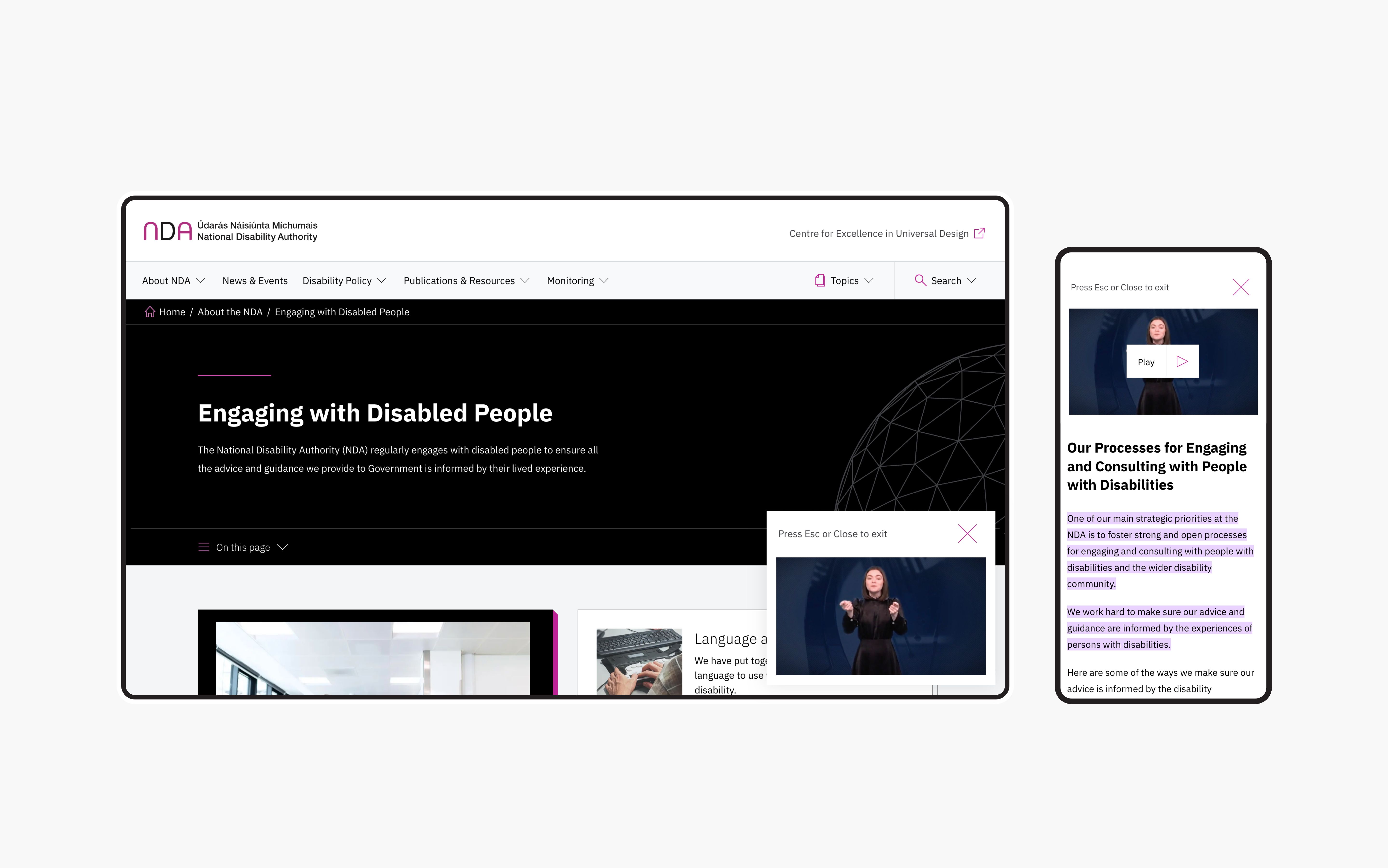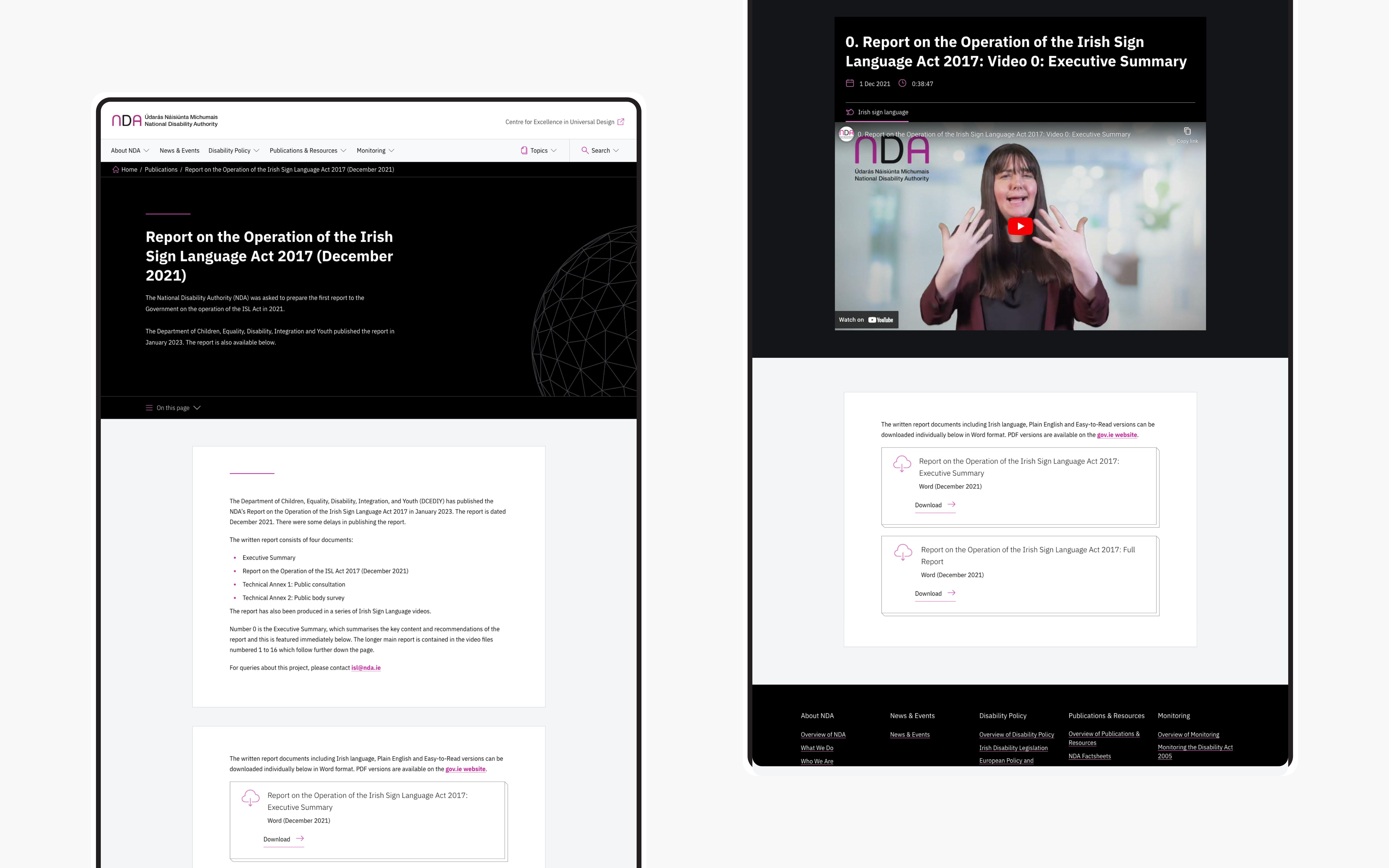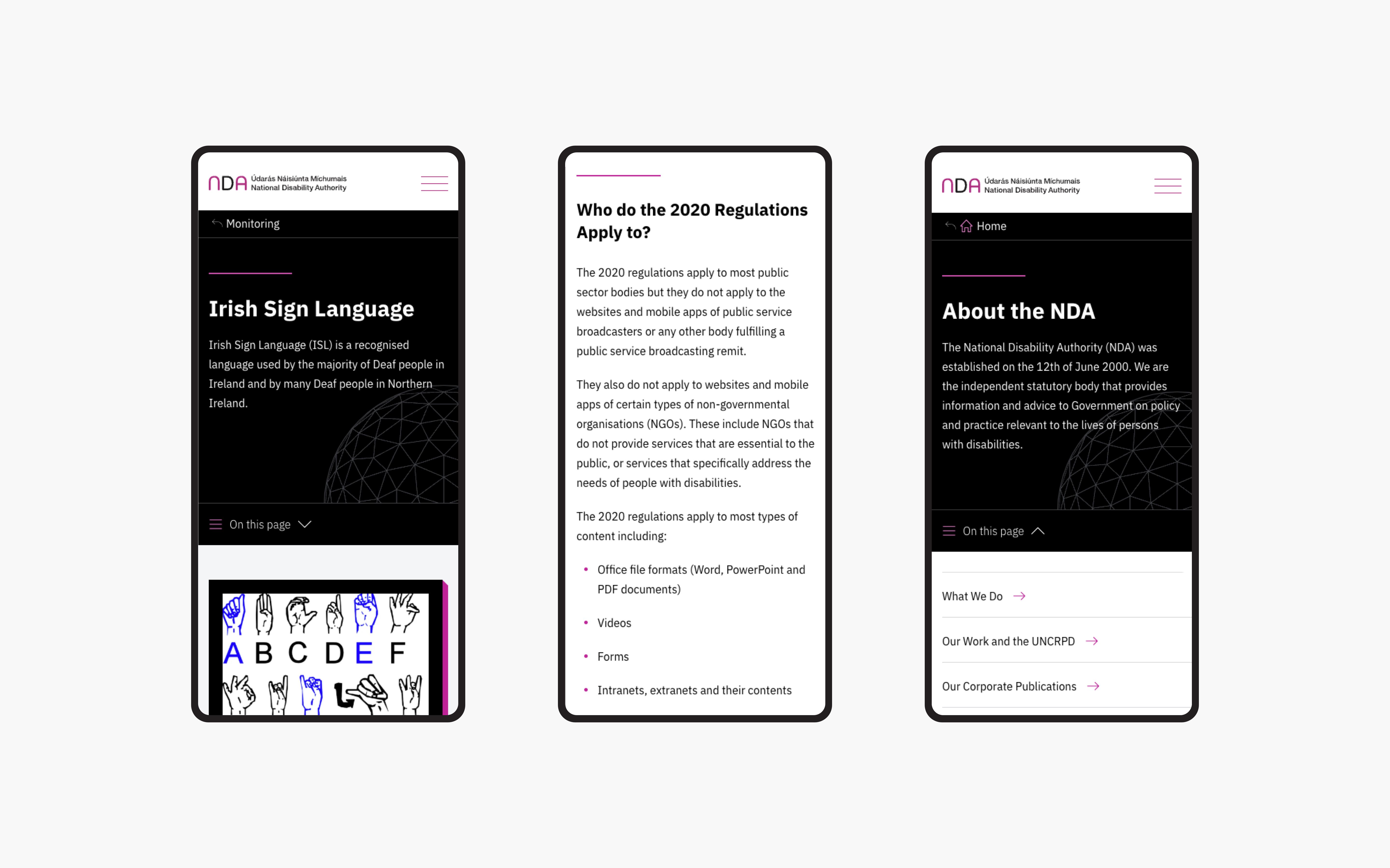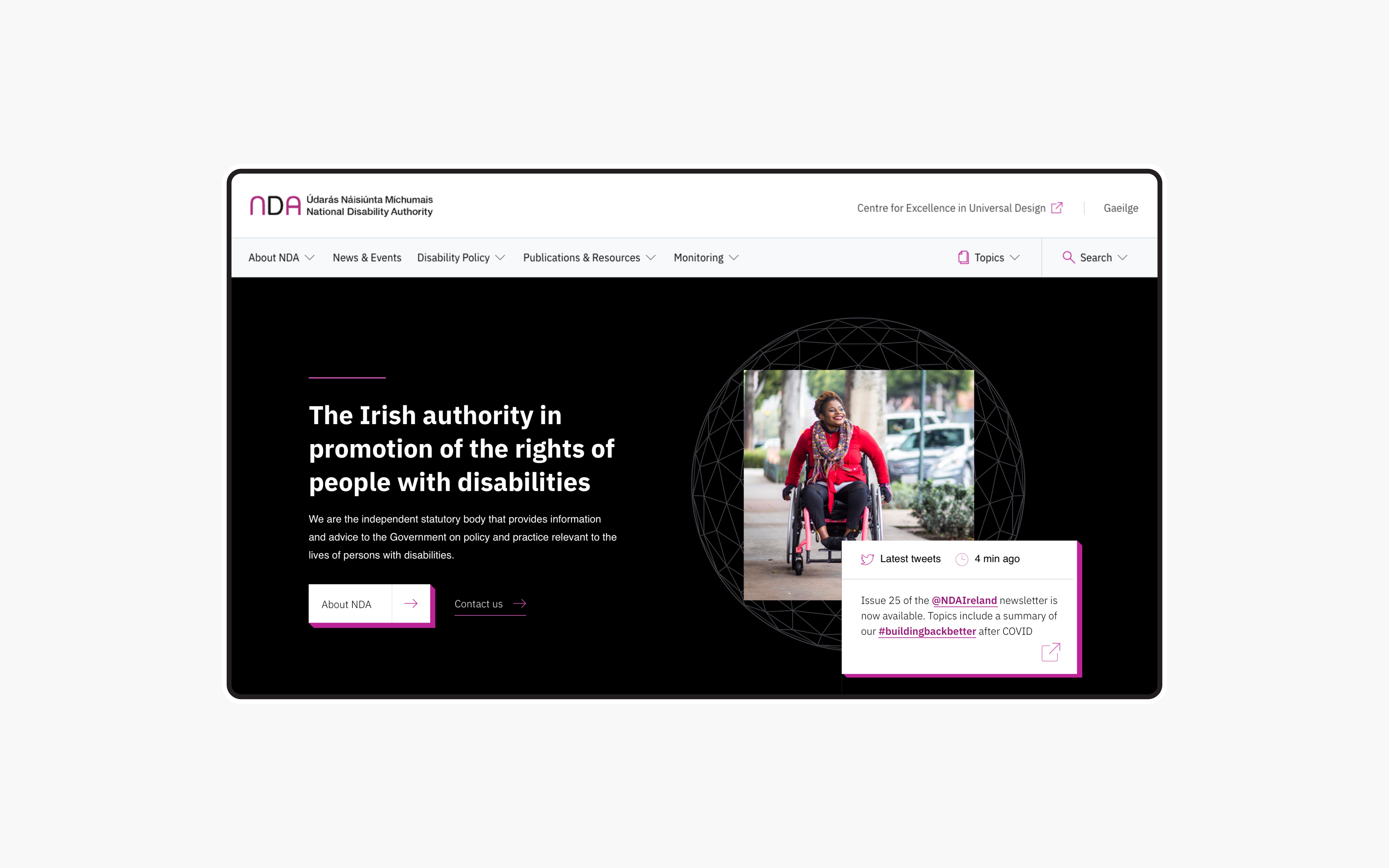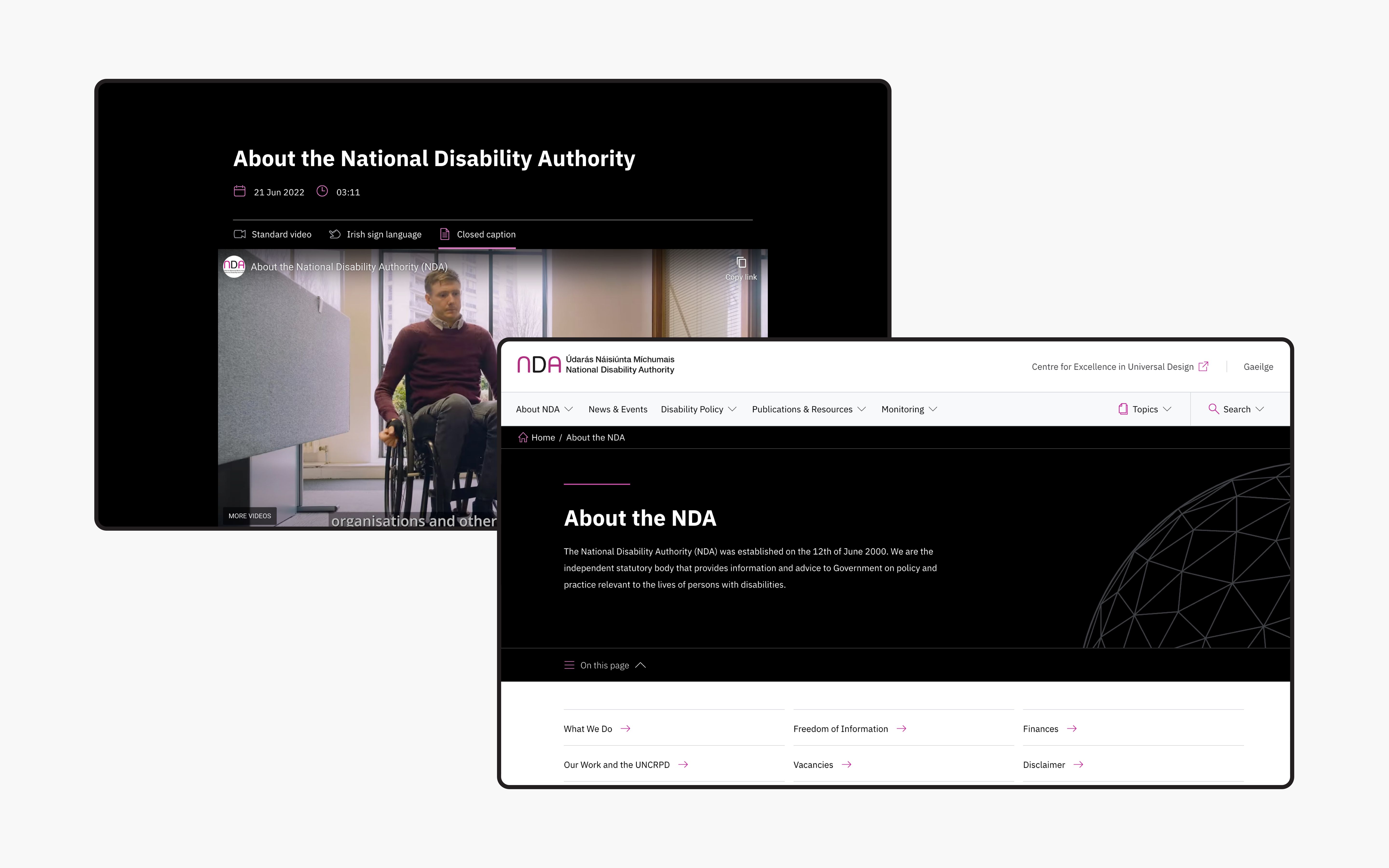 It was important that accessibility did not hold back our creativity, but rather, would force us to think outside of the box and design in a new way. When it came to implementation, our developers took meticulous care to produce clean code that was tested against requirements such as screen readers, colour ratios/contrasts and alt. text abilities. The new site also incorporates an Irish Language feature and Irish Sign Language videos increasing user potential and experience. For NDA we ensured accessibility was implemented from the onset, starting with accessible design and then bringing this into the build. Given the website needed to be accessible from every angle, the chosen CMS was no exception and was fully accessible as per WCAG AA standards. This then extended to the implementation of the Irish sign language toggle.