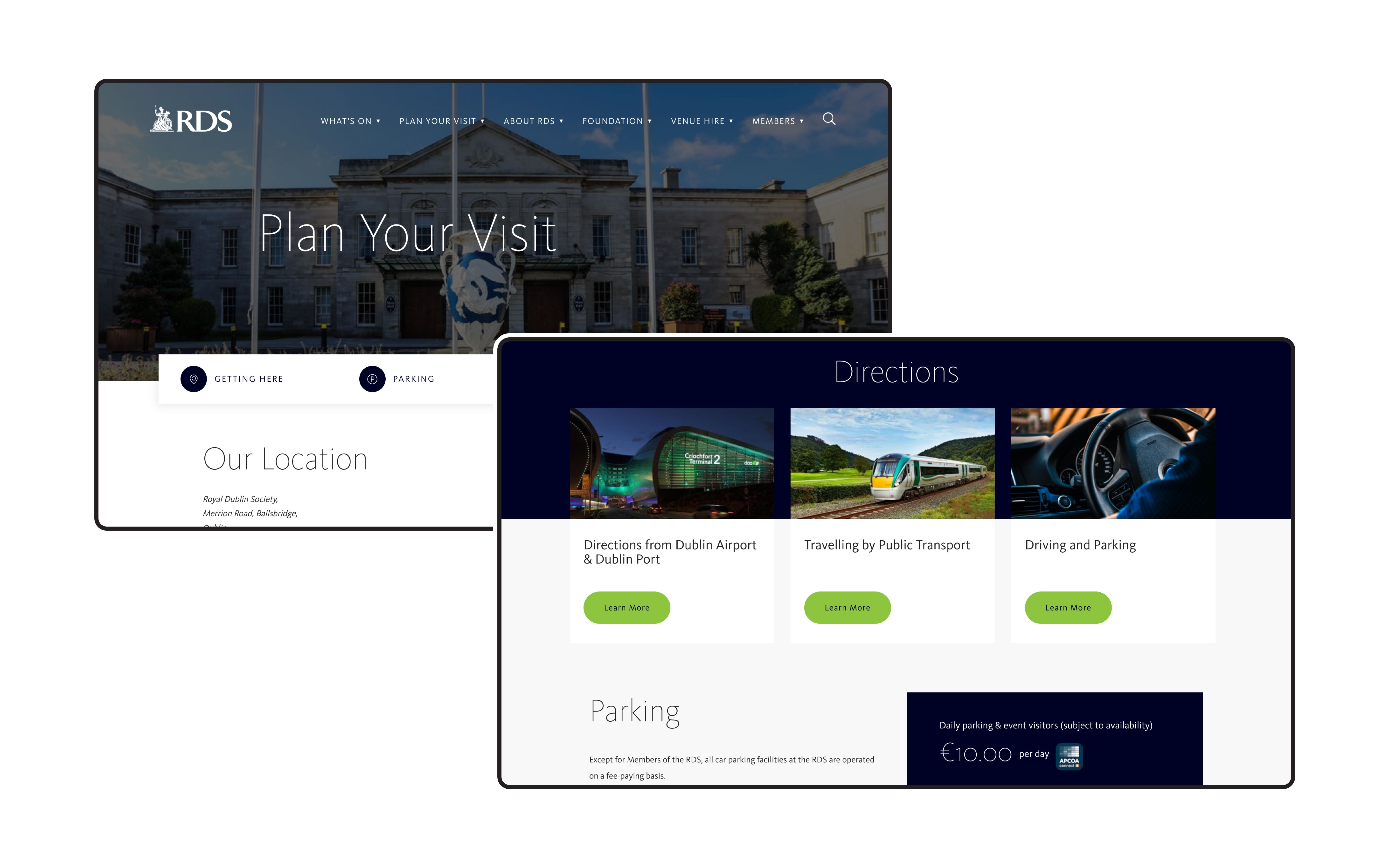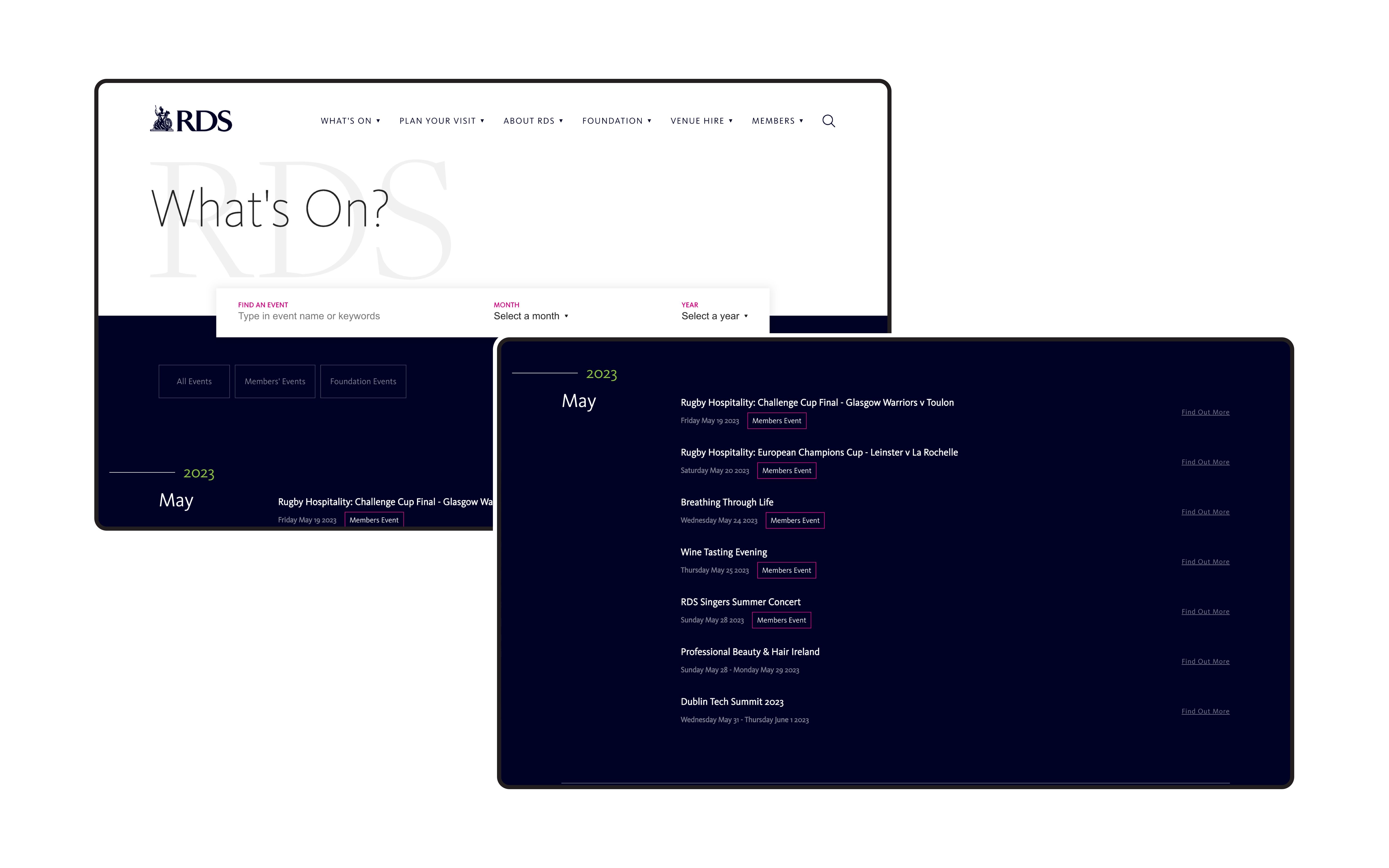 With a rich history dating back to 1731, RDS has consistently aimed to foster cultural and economic growth in Ireland. From the beginning, our mission was to develop a website that captured the experience and value they bring to the table. Our planning process consisted of a comprehensive analysis of website functionality, ultimately leading us to prioritise three key aspects: enhancing user engagement, optimising the mobile experience and improving overall site performance.