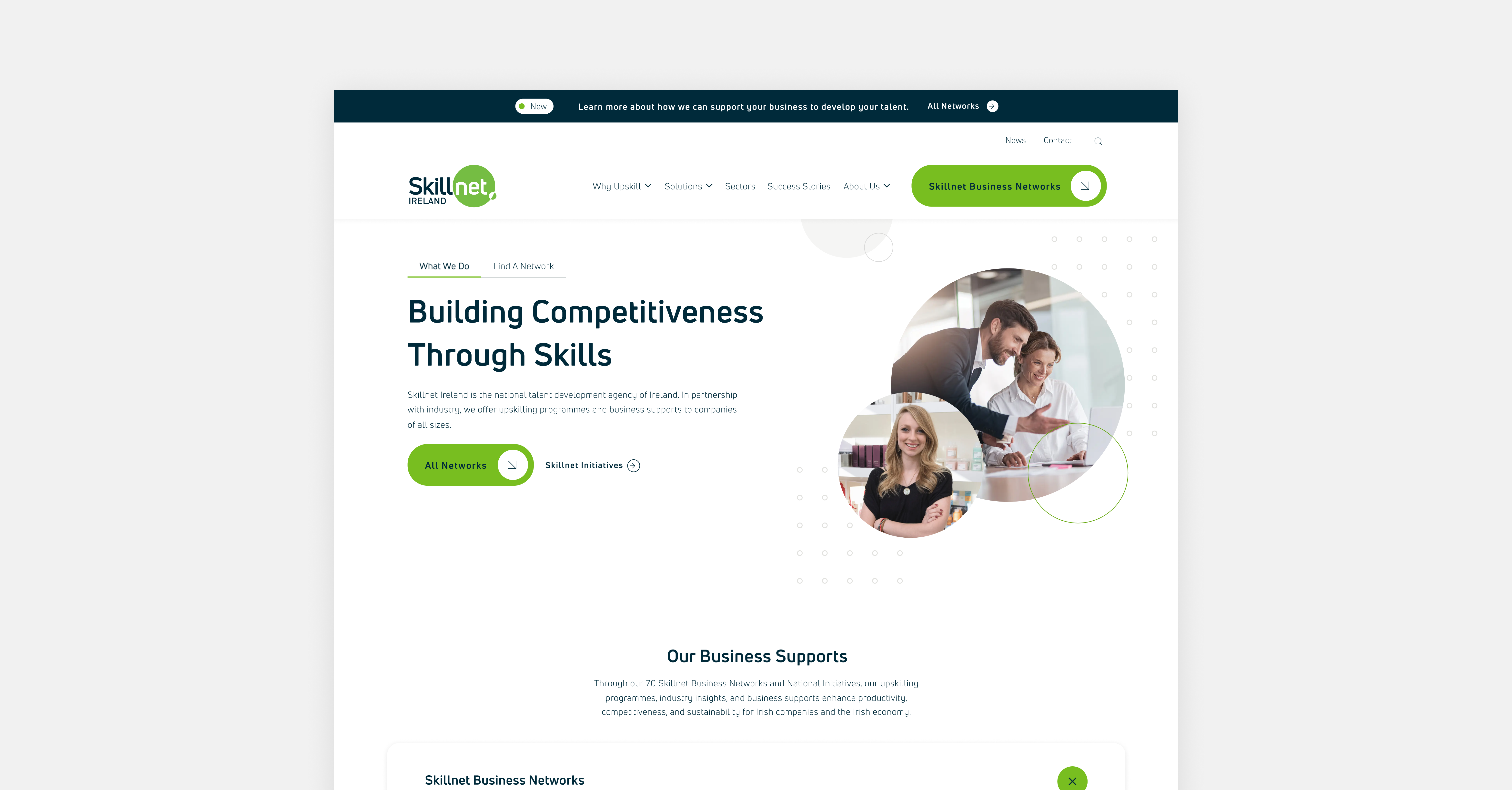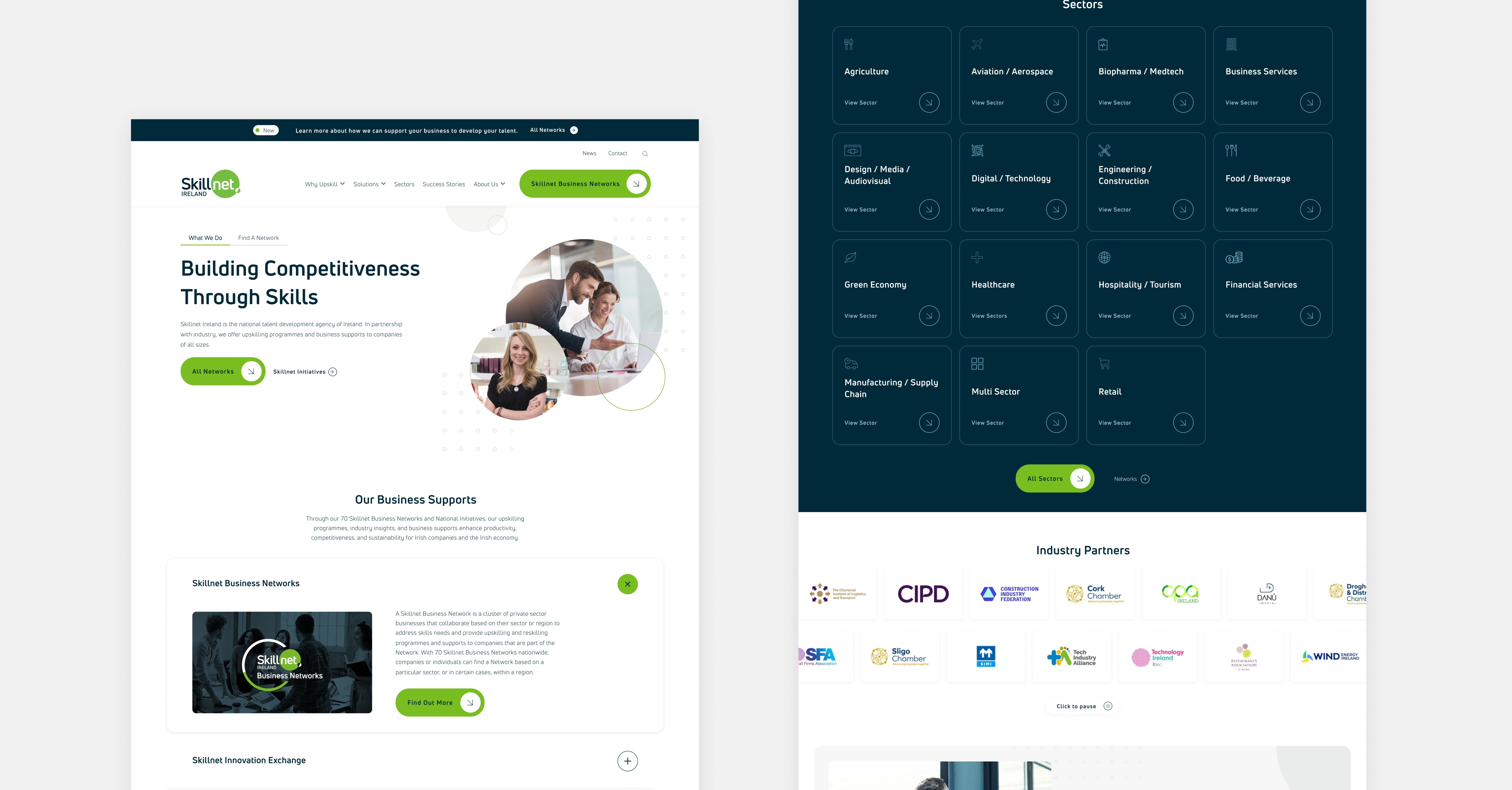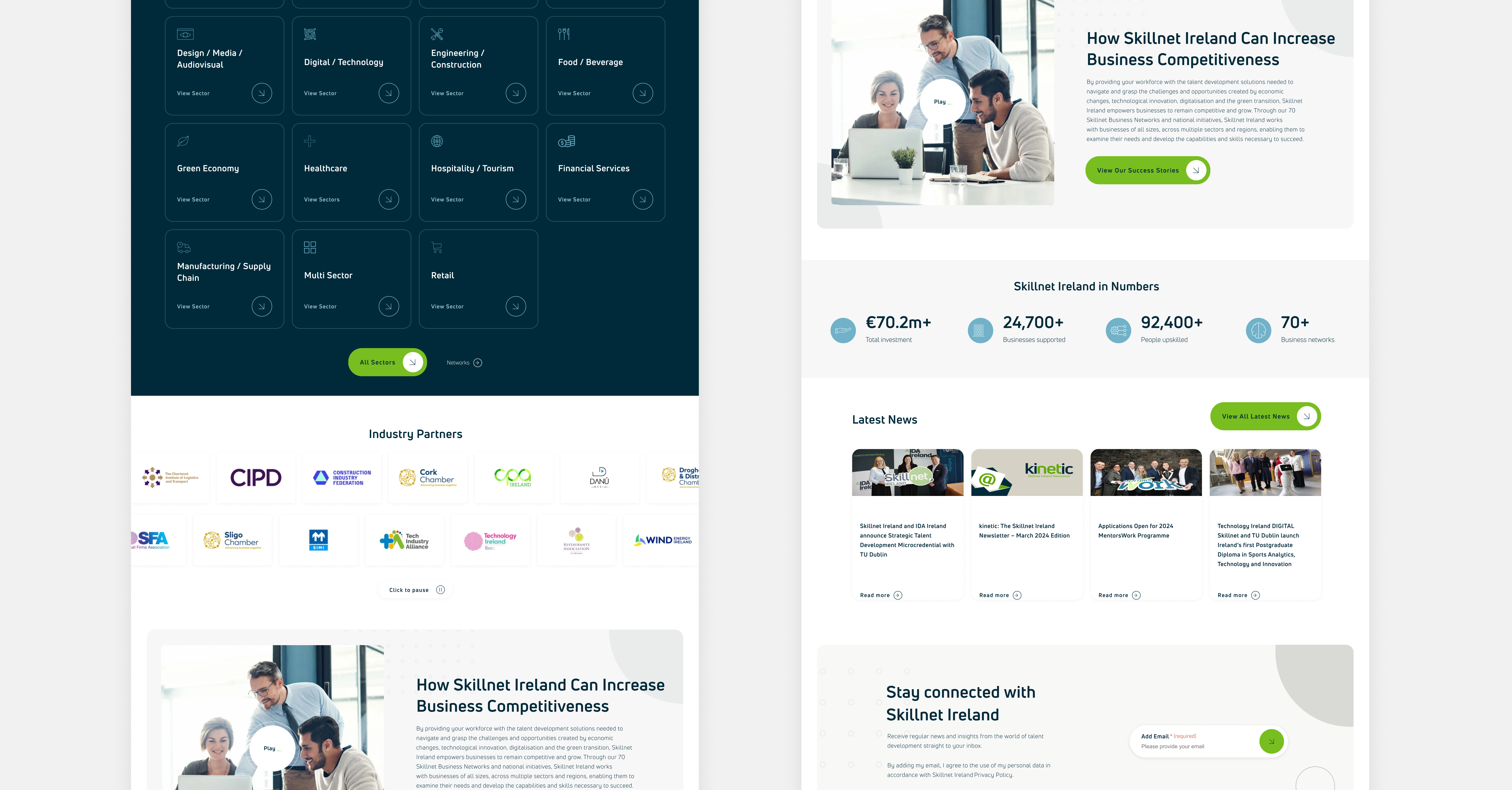 Skillnet Ireland is a business support agency of the Government of Ireland, responsible for advancing the competitiveness, productivity and innovation of Irish businesses. It aims to connect businesses and their workforces with strategic talent development programmes and encourage investment in talent. To fulfill this mission, Skillnet chose Kooba as their trusted partner to ensure clarity and purpose in their website design. With a firm understanding of Skillnet’s audience and digital objectives, we created a platform tailored to meet users' needs and fulfill Skillnet's vision. Project success included enhancing the user journey and presenting information seamlessly all while embodying Skillnet’s brand's ethos of being informative, engaging and intuitive.
