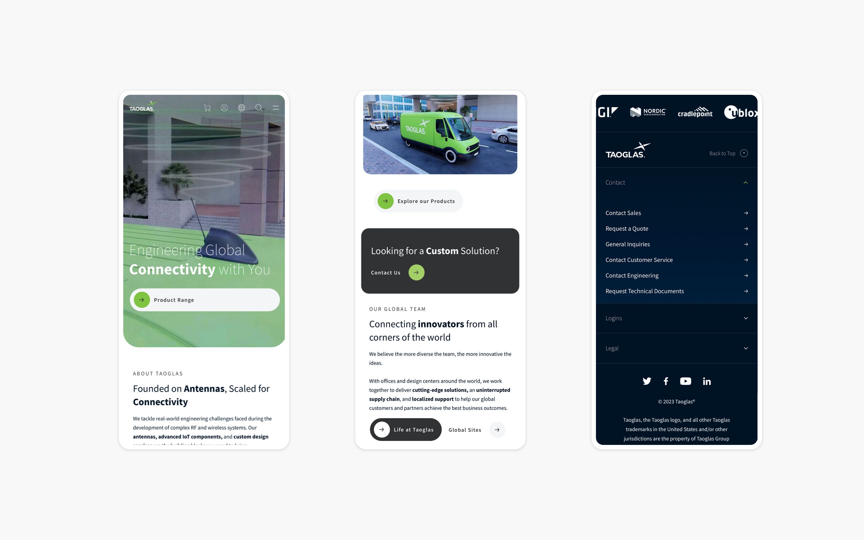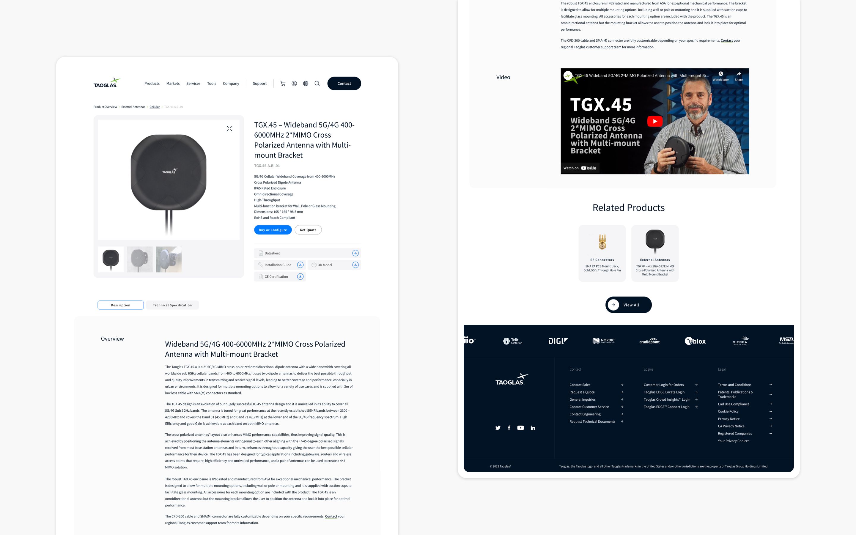 With a focus on Taoglas' three key product offerings, we leveraged innovative design techniques to showcase their advanced technology solutions effectively. Interactive 3D product models allowed users to explore products from all angles, providing an immersive and engaging experience. Detailed technical specifications and downloadable product sheets were readily accessible, catering to the needs of product designers seeking in-depth information. By creating a visually compelling and informative product showcase, we facilitated a streamlined user journey that led to increased product interest and higher-quality leads.