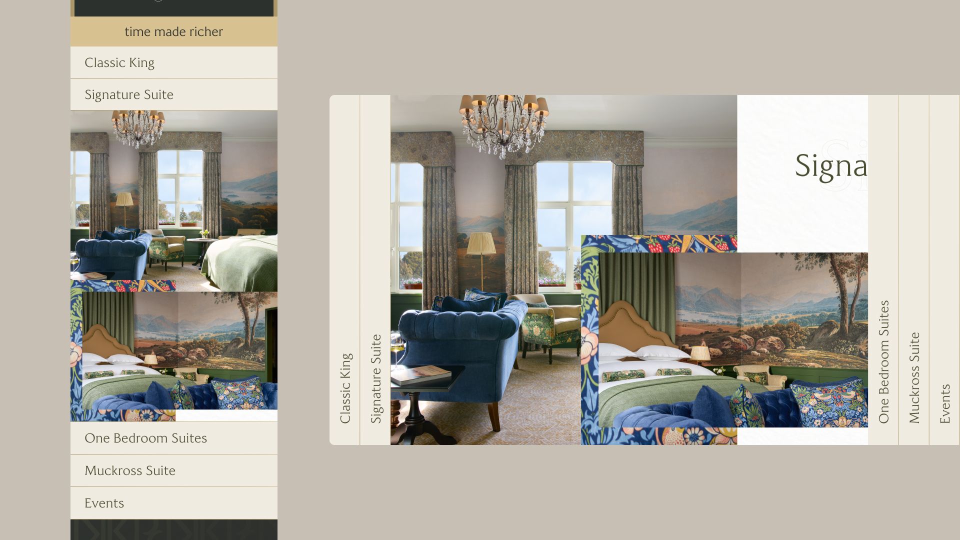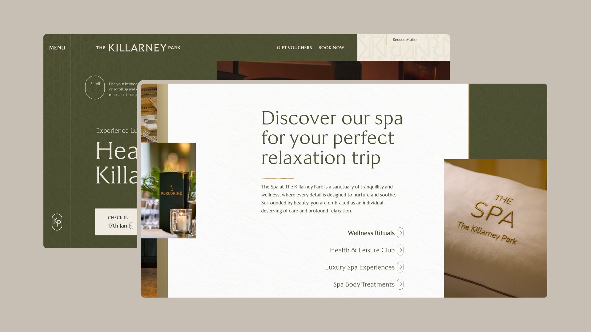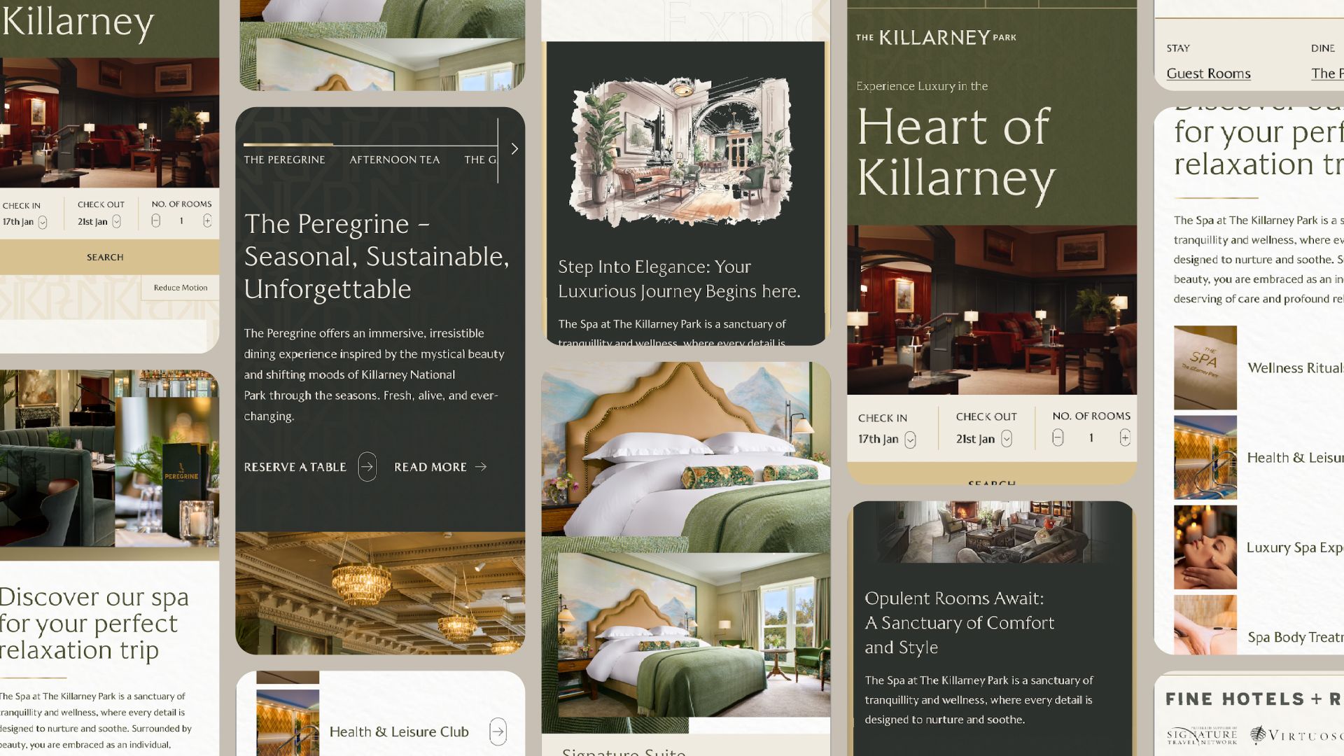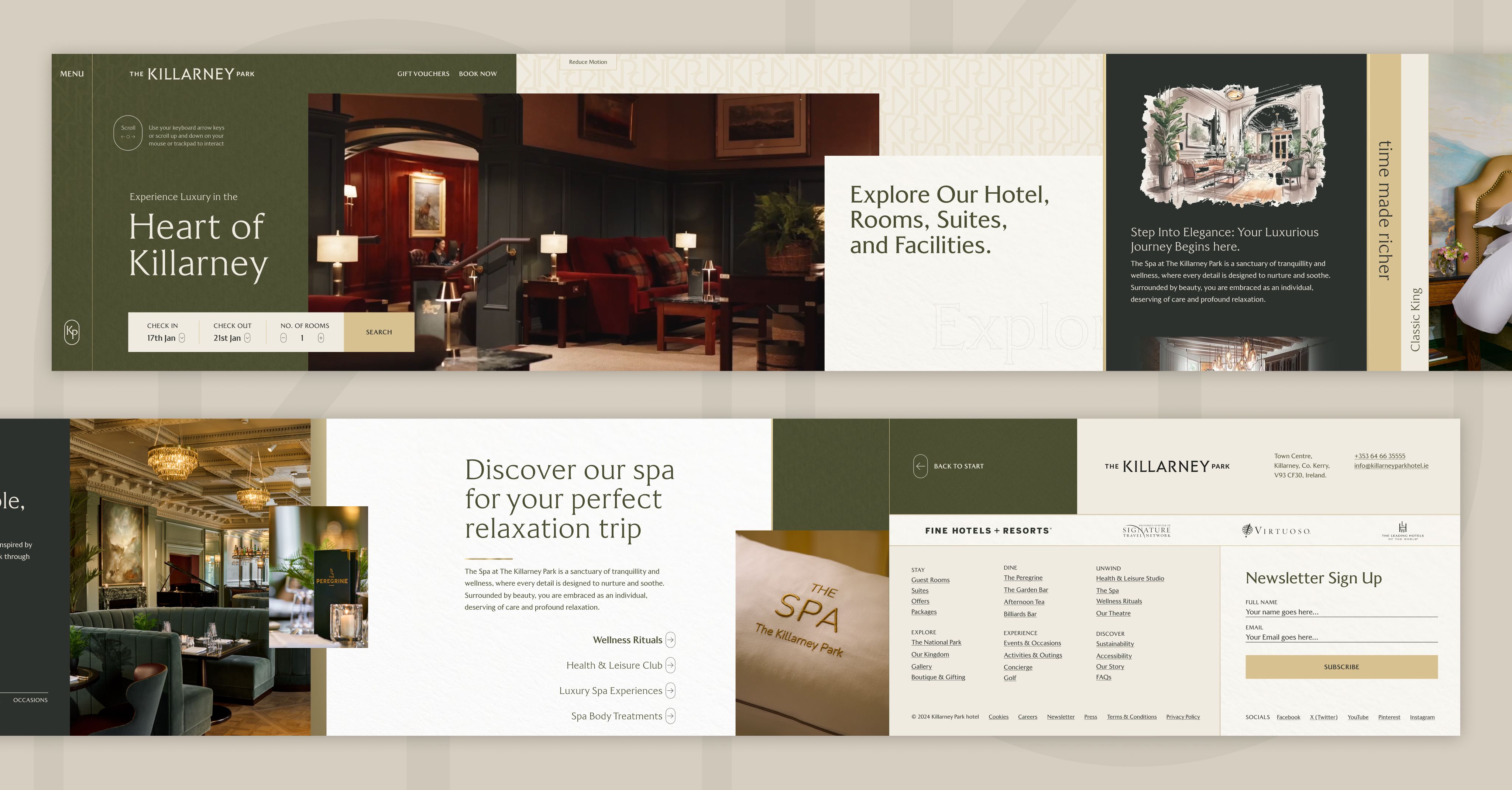 The standout feature of the Killarney redesign was the implementation of a dynamic horizontal side-scroll on the homepage, a bold and creative choice that offers a distinctive and unique browsing experience. The resulting user journey is smooth, immersive, and memorable. With the help of bespoke photography, users are drawn into the site in an engaging way, encouraging exploration of both the hotel’s luxurious offering and the surrounding destination. This approach helps The Killarney Park stand out in a highly competitive market where many hotel websites rely on static, template-driven formats that do little to differentiate their brand.