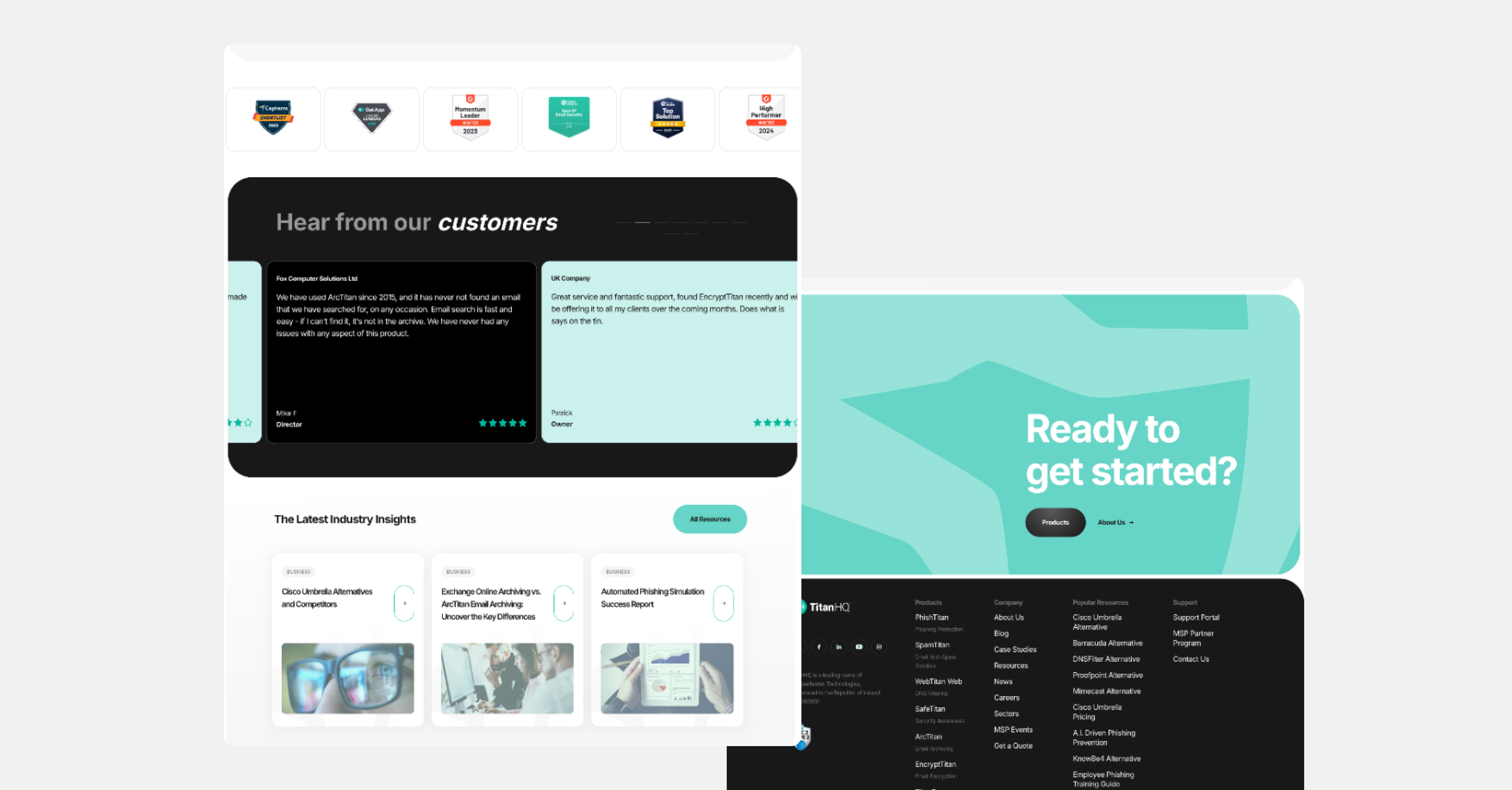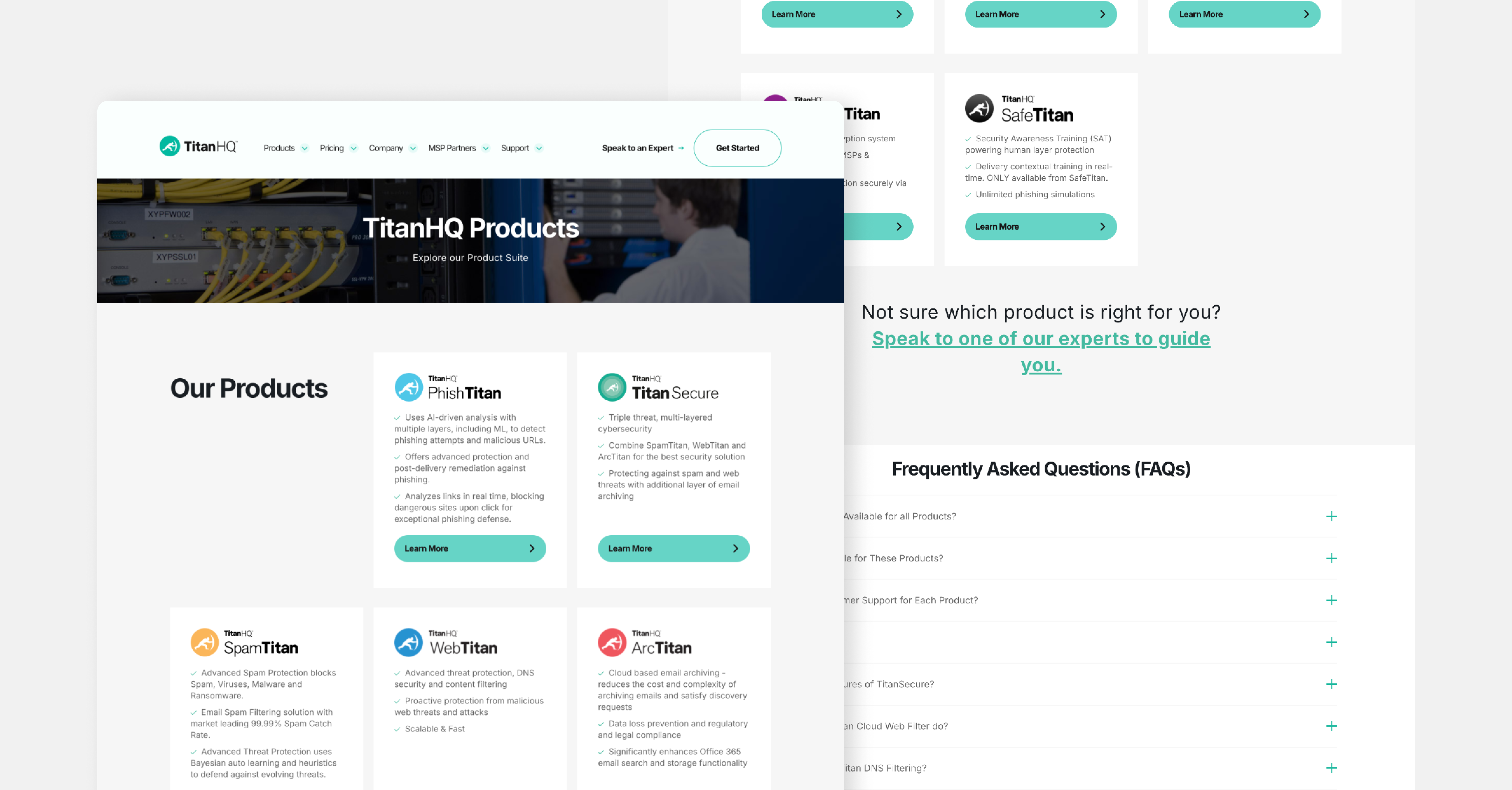 Through a thorough UX audit, careful analysis of pain points, and intensive discussions with TitanHQ, Kooba was able to identify several promising upgrades to their existing site. Kooba’s design team rebuilt the UX to facilitate smoother user journeys and better access to the content needed to drive conversions. Simultaneously, the UI was redesigned to be more dynamic, clear, and modern. The result was a significant improvement across several key metrics, including increased user traffic, improved engagement rates, and more visits to the most valuable pages.