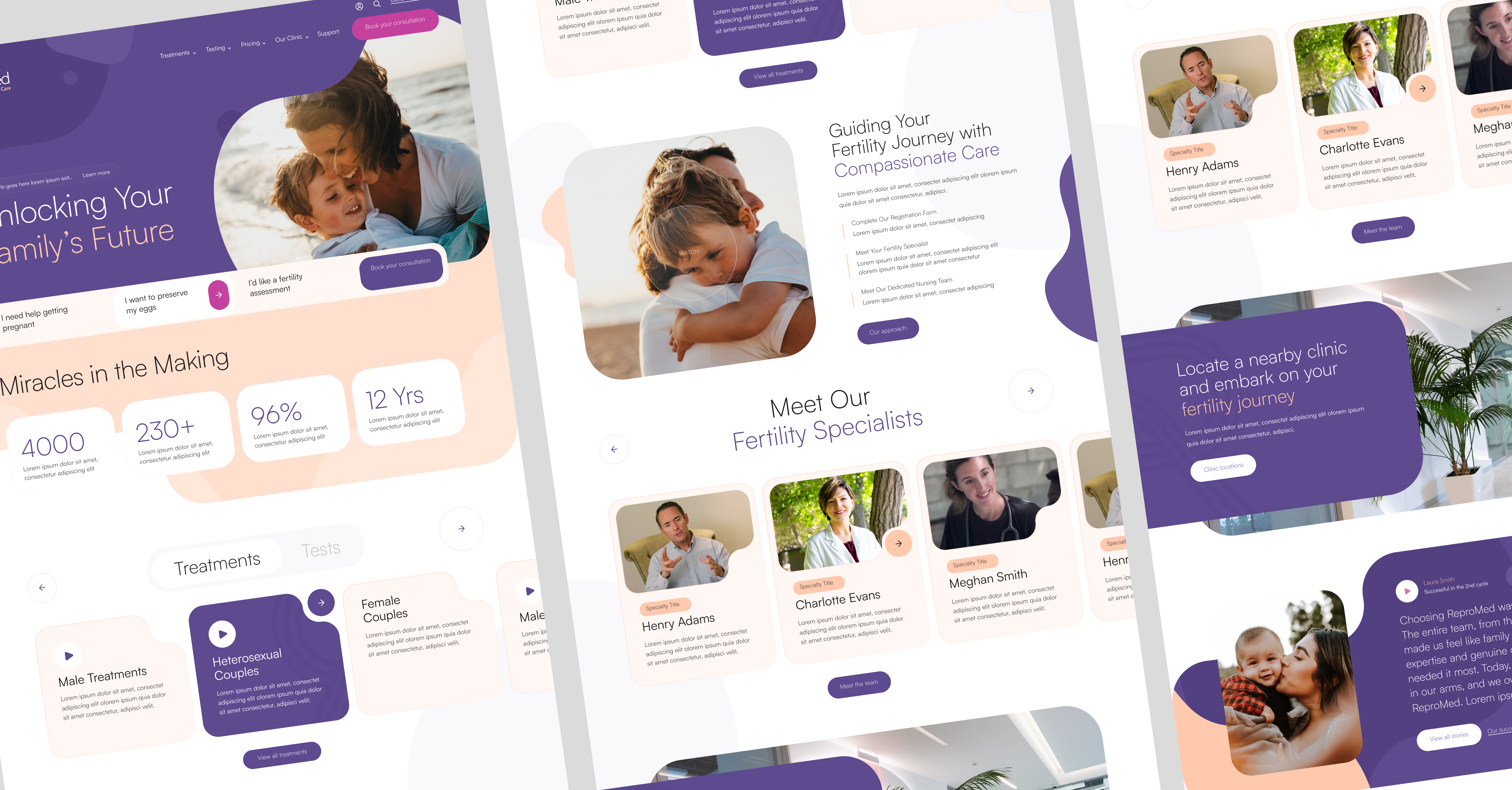ReproMed approached Kooba with a unique challenge. As a leading fertility treatment centre, they needed to illustrate the patient experience in a warm, welcoming manner. Kooba decided to emphasise the purple tone of their brand towards this end, combining it with a soft palette of beige and pink. The end result was a website that seemed natural, approachable, and prestigious, with the use of purple signalling the high status of ReproMed’s care. This gorgeous colour palette was further reinforced by the incorporation of interactive elements across the site, with buttons and panels changing colour when hovered over. The final UI is therefore truly enjoyable to view, and invites users to delve deeper into the site.