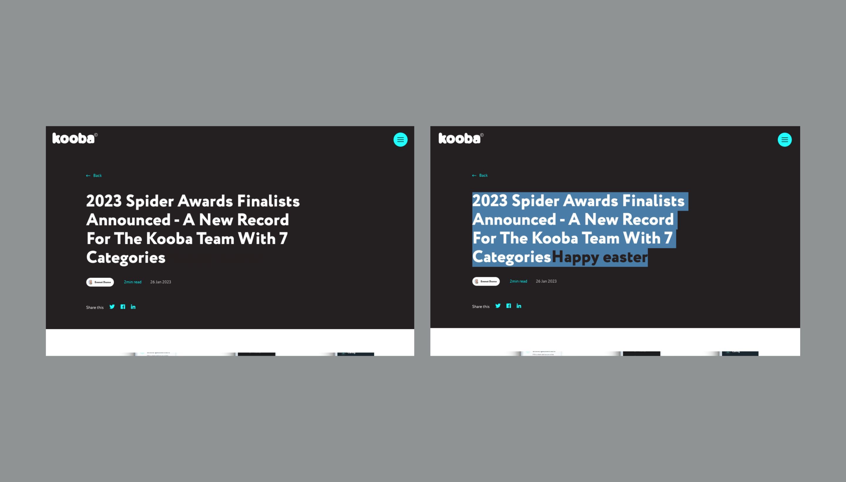 This year, I introduced a new challenge to the team: a more dev focused seasonal competition called The Kooba Digital Easter Egg Challenge.