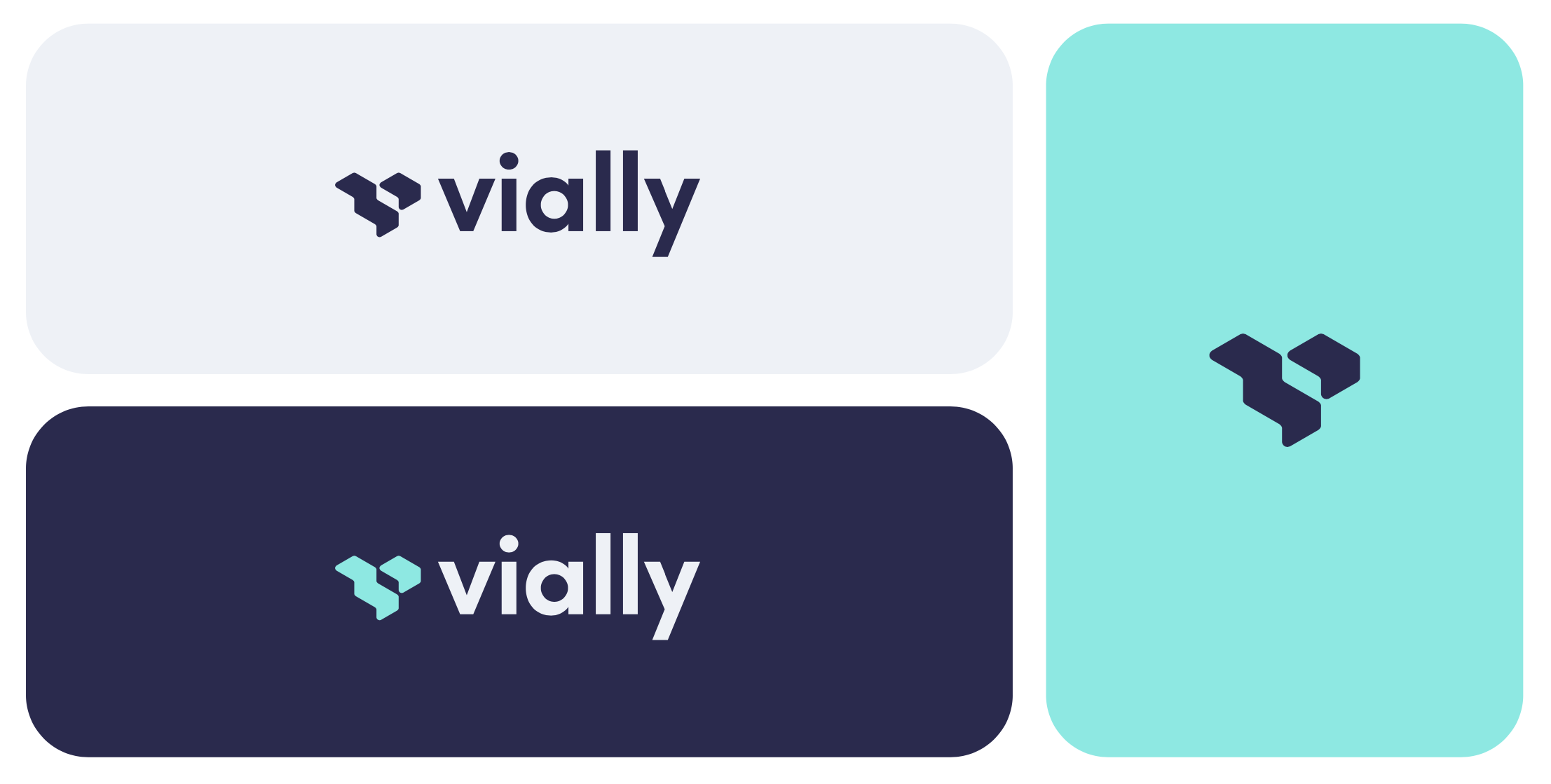 A logo cannot create a brand by itself. Crucial to the success of the Vially project was the integration of the logo’s elements into the wider design of the brand. The shapes of the logo were used to build background textures for Vially.io and different social media templates. Likewise, the brand palette was tested with the logo’s design, and the high contrast colour scheme helped elevate an already striking and accessible logo.